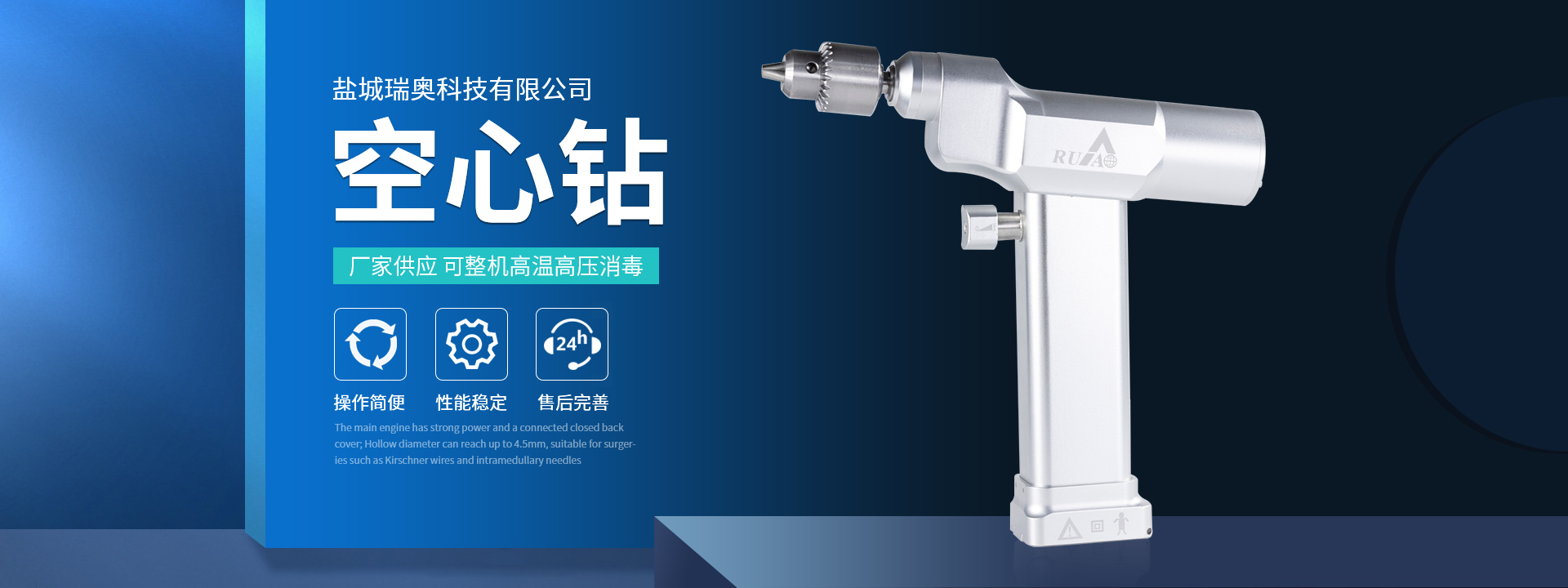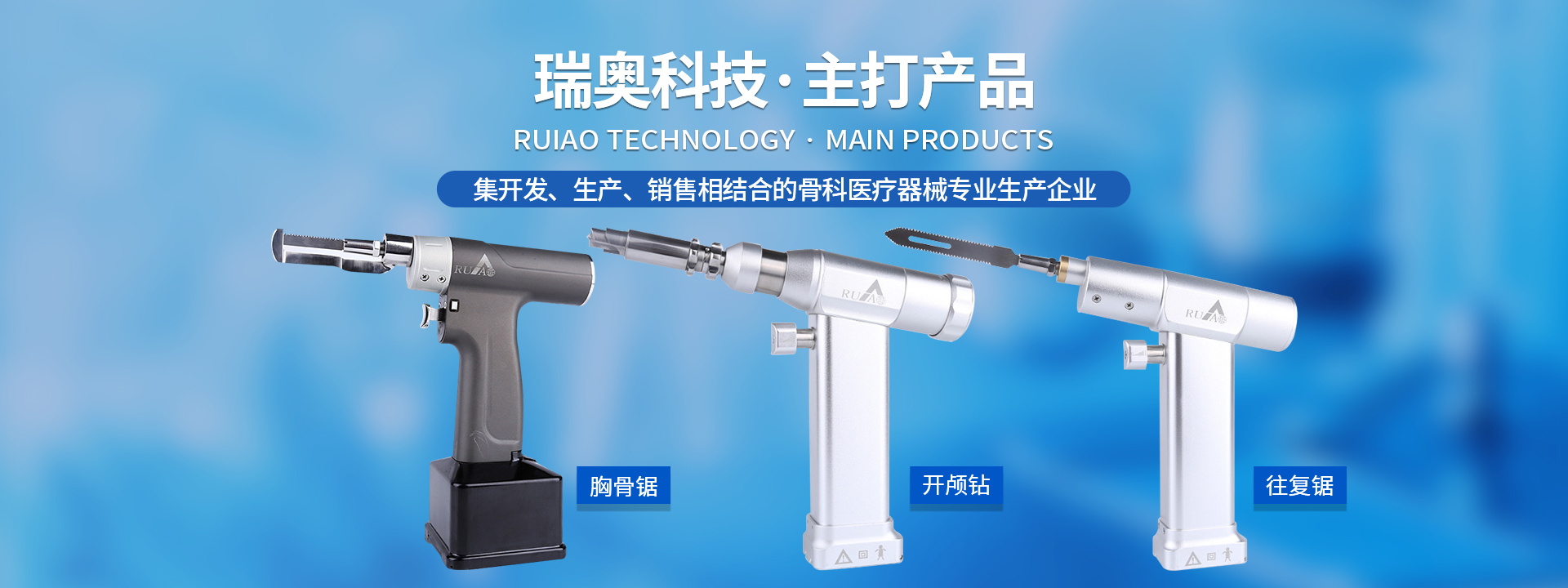 鹽城瑞奧科技有限公司主要產(chǎn)品:醫(yī)用電動(dòng)鋸鉆系列(可高溫高壓消毒和熏蒸消毒兩種):包含骨鉆、擺鋸、胸骨鋸、空心骨鉆、開(kāi)顱鉆、顱骨銑等等,適用于骨科、腦外科、神經(jīng)外科、胸外科、手足及顯微外科、脊柱外科、整形外科等各種手術(shù)的要求。電動(dòng)石膏鋸可切割高分子繃帶、石膏等?;A(chǔ)器械系列:咬骨鉗,髓核鉗,椎板咬骨鉗,持骨鉗,四肢骨折手術(shù)器械包等。